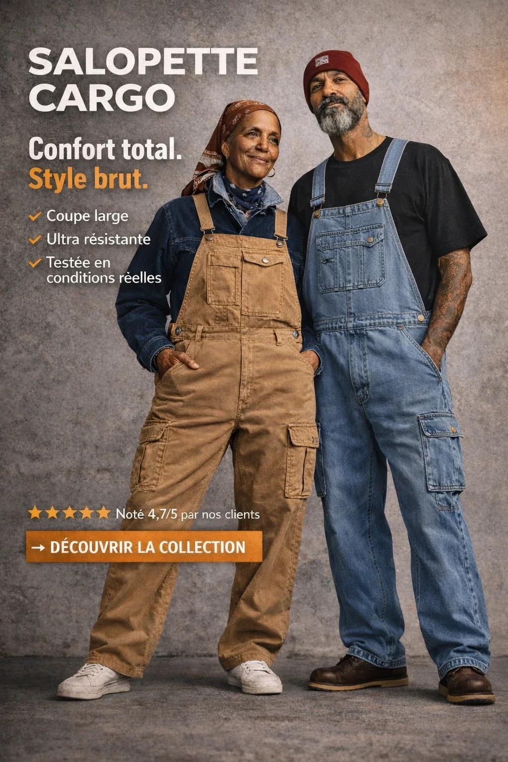 Nos modèles sont sélectionnés pour leur qualité, leur durabilité et leur capacité à s’adapter à toutes les morphologies. Que ce soit pour un usage quotidien, un look streetwear ou une tenue de festival, la salopette grande taille répond à toutes les attentes.